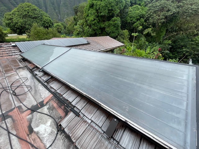 I got a call from a Douglas in Kaneohe who wanted to have 48 of his solar PV panels cleaned and I told him that it would be no problem. He told me that he tried cleaning them himself and quickly realized that it was just taking way too long. Solar panel cleaning is one of our specialties and I briefly explained the process and proper equipment that we utilize to efficiently clean the solar panels without using any harsh chemicals to remove all of the organic algae and dirt build up throughout the year. Douglas was very impressed with the finished results and has already scheduled an annual cleaning with us, thank you Doug!