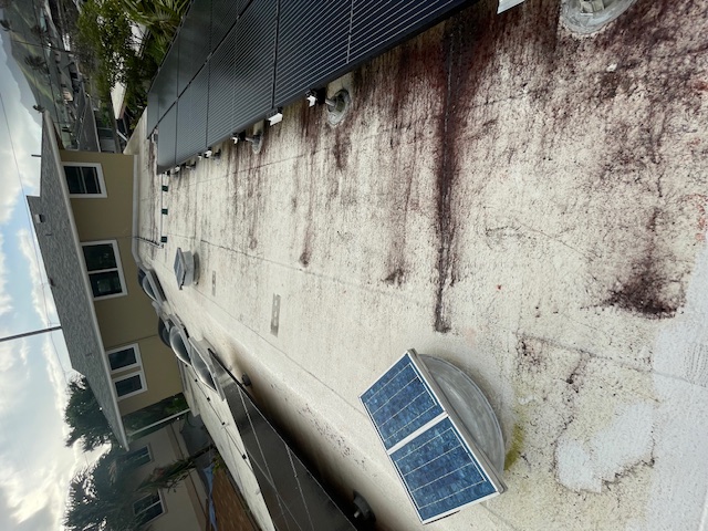 I received a call from Herb out in Kailua. He is planing to put his house on the market and was interested in having his GACO silicone roof cleaned. I met with Herb to get a better look at the condition of the roof and could see that it was covered with black algae and mildew. I explained the process and types of chemicals used to properly soft wash his roof in order to make it look nice and clean again. He also had a set of 27 PV panels that I recommended having cleaned using our SOL-Tec rotating water brush, to remove all the dirt and organics from the panels, thus increasing the solar production.