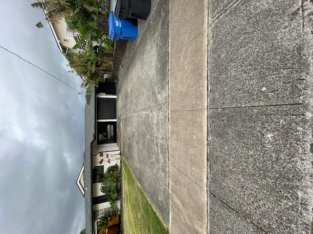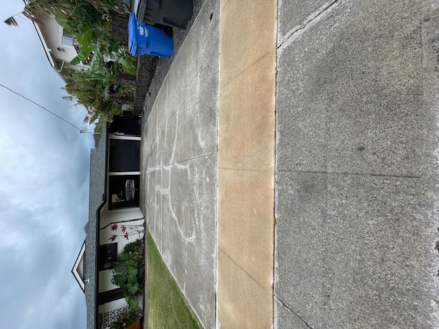 Normally we pre treat the concrete with a mild bleach solution to neutralize and loosen up all the algae and mildew to make the cleaning process easier using our 20" surface cleaner. Suzanne was concerned about minimizing any run off that may reach the ocean from the pool deck area so we only treated the front driveway and sidewalk areas. Everything turned out amazing and Suzanne was very happy with the results.